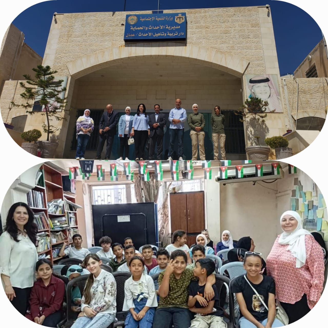 وذلك بزيارة فريق المنتدى الى دار تربية وتأهيل الأحداث لإقامة الفعاليه الأخيرة بالتنسيق مع مديرية الأحداث والحماية / وزارة التنمية الاجتماعية وبمشاركة فريق التوعية المتنقل الخاص بادارة حماية الأسرة،