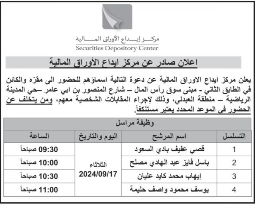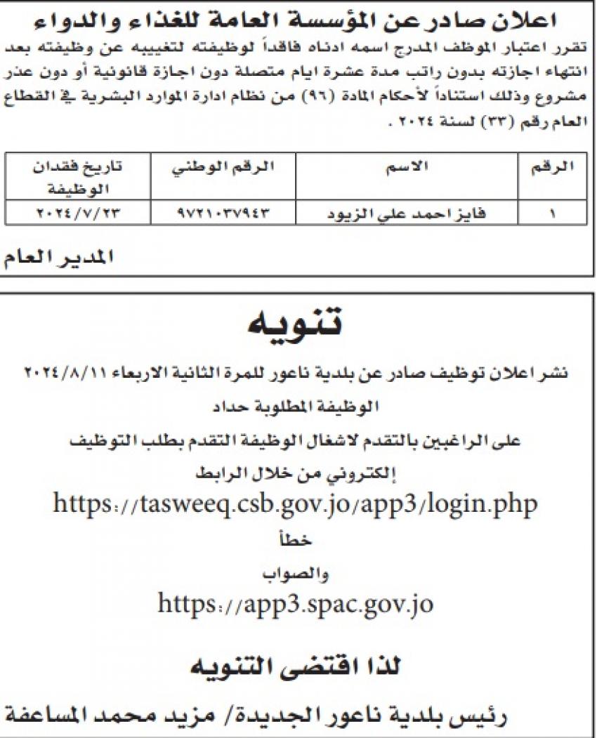 أحداث اليوم - دعت عددا من المؤسسات والوزارات ،اليوم الخميس، مرشحين اجتازوا الامتحان التنافسي للحضور المقابلة الشخصية لغاية استكمال اجراءات التعيين لديها.وكما دعت عددا من المؤسسات الحكومية عن توفر شواغر وظيفية لديها.وتاليا الأسماء: