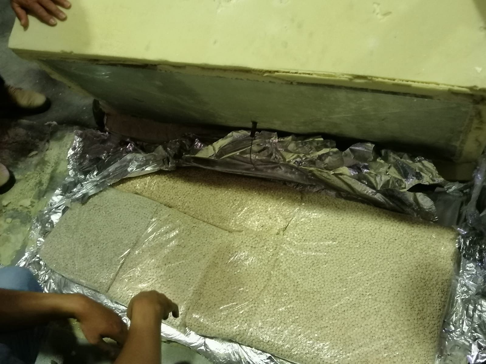 وجرى تحديد مكان المستودع ومداهمته وبتفتيشه تم ضبط الثلاجة وعُثر بداخلها على 150 ألف حبّة من حبوب الكبتاجون المخدرة وما زال التحقيق جارياً في القضية .
