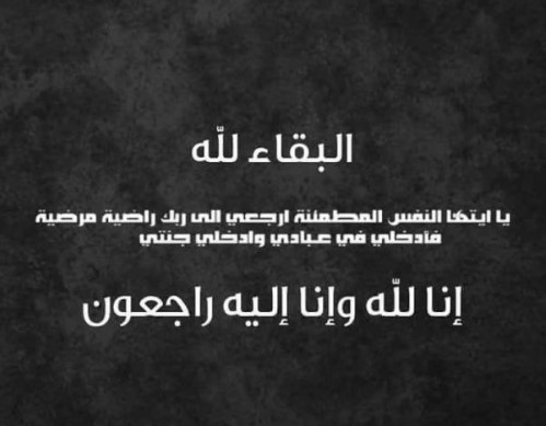 انتقل الى رحمة الله تعالى اليوم الثلاثاء 1-10-2024: