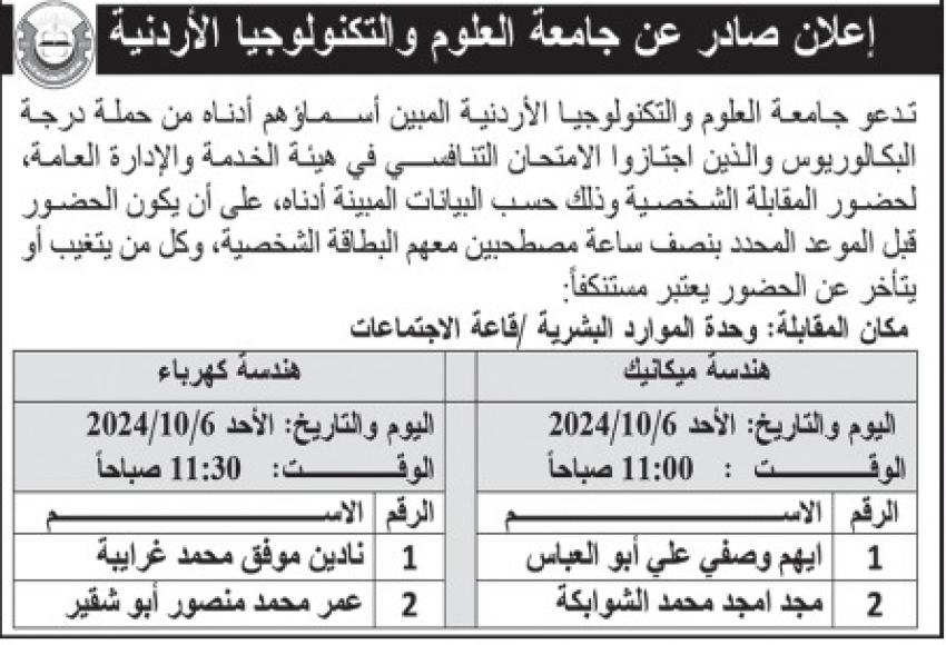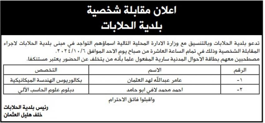 أحداث اليوم - أعلنت عددا من الوزارات والمؤسسات الحكومية ،اليوم الاربعاء، عن حاجتها لملء شواغر وظيفية لديها.وكما دعت مؤسسات مرشحين للمقابلة الشخصية لاستكمال اجراءات التعيين.وتاليا التفاصيل والأسماء: