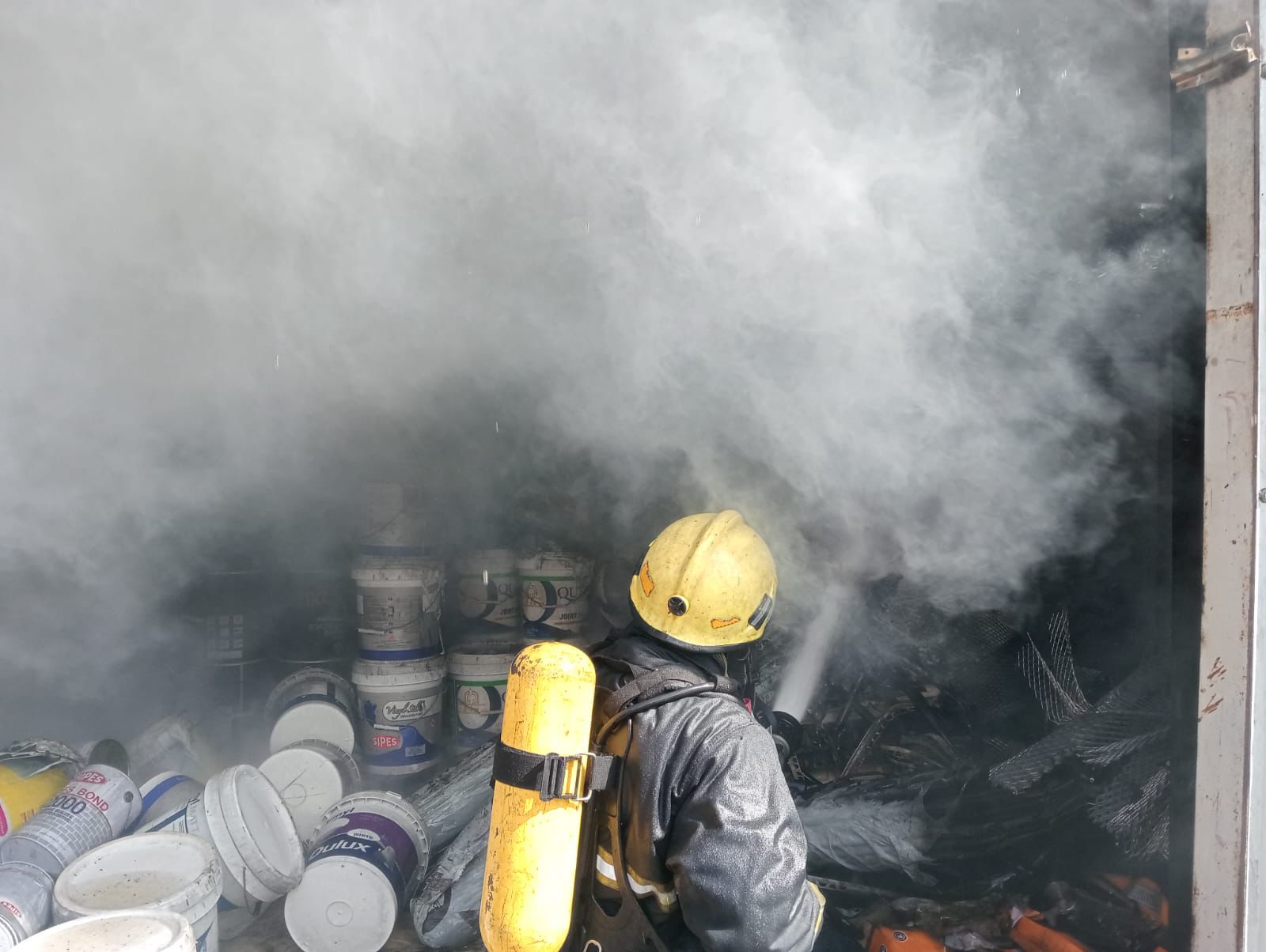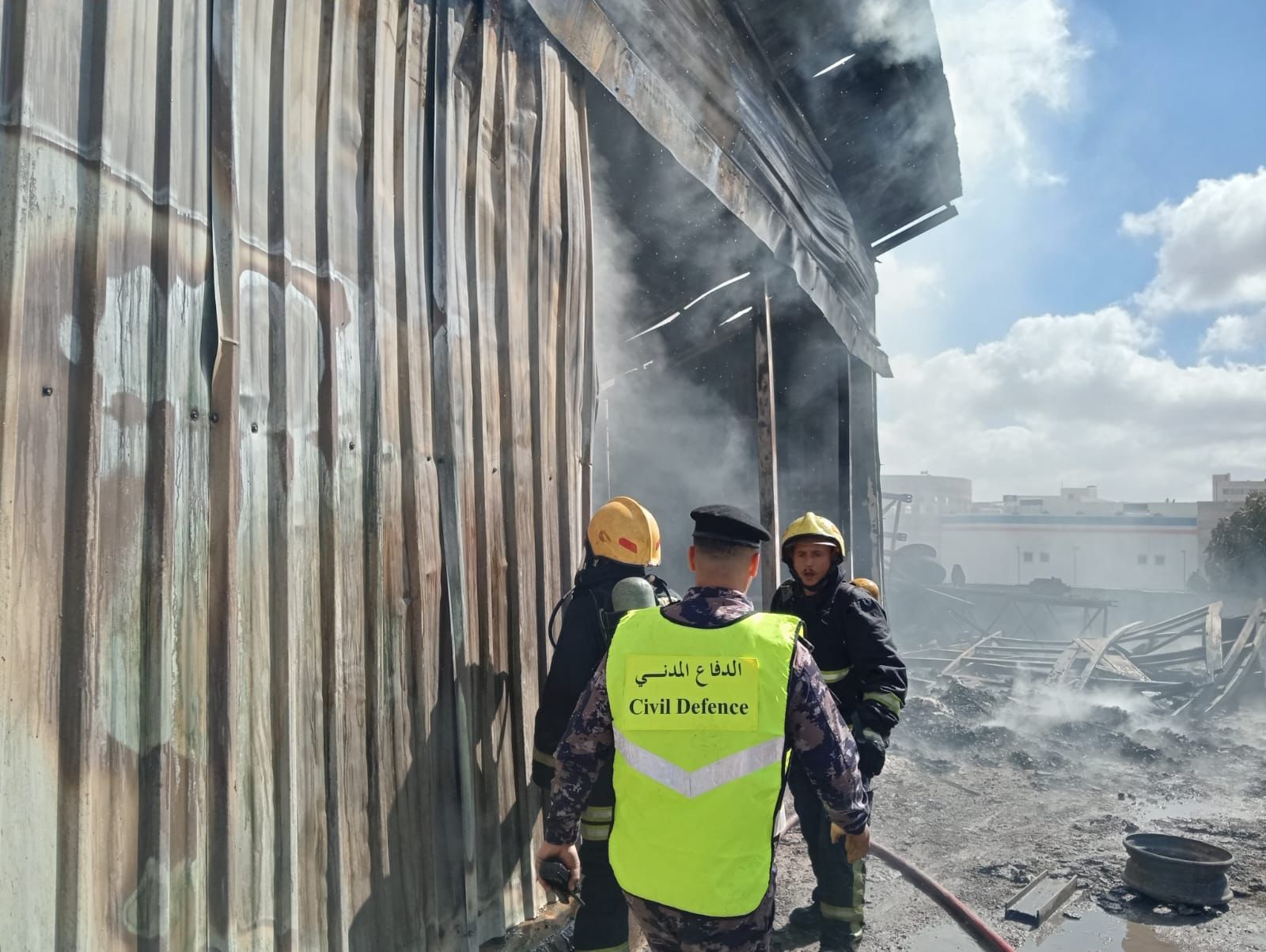 الدفاع المدني يخمد حريق محل ومستودع لمواد بناء في محافظة العاصمة