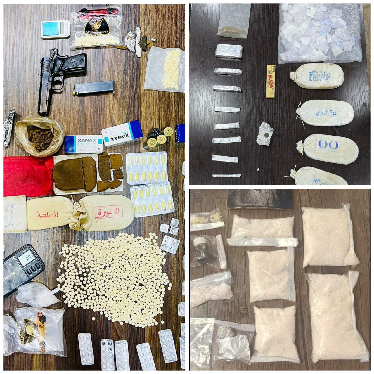 فيما جرى في محافظة إربد وبعد مراقبة وتتبع تحركات أحد تجار المخدرات وجمع المعلومات الاستخبارية حوله جرت مداهمته وإلقاء القبض عليه بعد التأكد من حيازته لكميات كبيرة من مادة الكريستال المخدرة، حيث جرى ضبط 2 كغم من تلك المادة بعد تفتيش مكان مداهمته ، فيما جرت كذلك في محافظة إربد مداهمة مروج للمخدرات وإلقاء القبض عليه وبحوزته كميات من مادة الحشيش الصناعي والحبوب المخدرة .