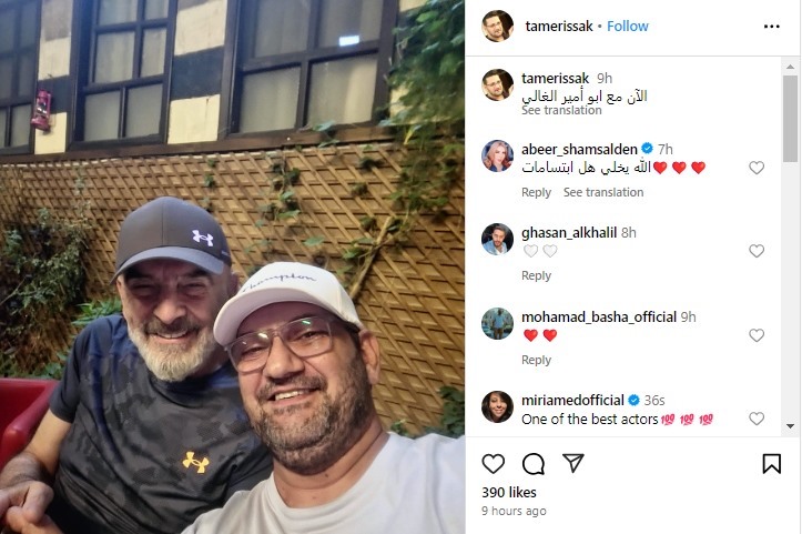 لكن المخرج تامر إسحاق شارك صورة تجمعه بحداد مساء أمس، خلال تصوير مسلسل "سيروم"، وعلق قائلاً في إطار نفي الخبر: "الآن مع أبو أمير الغالي"