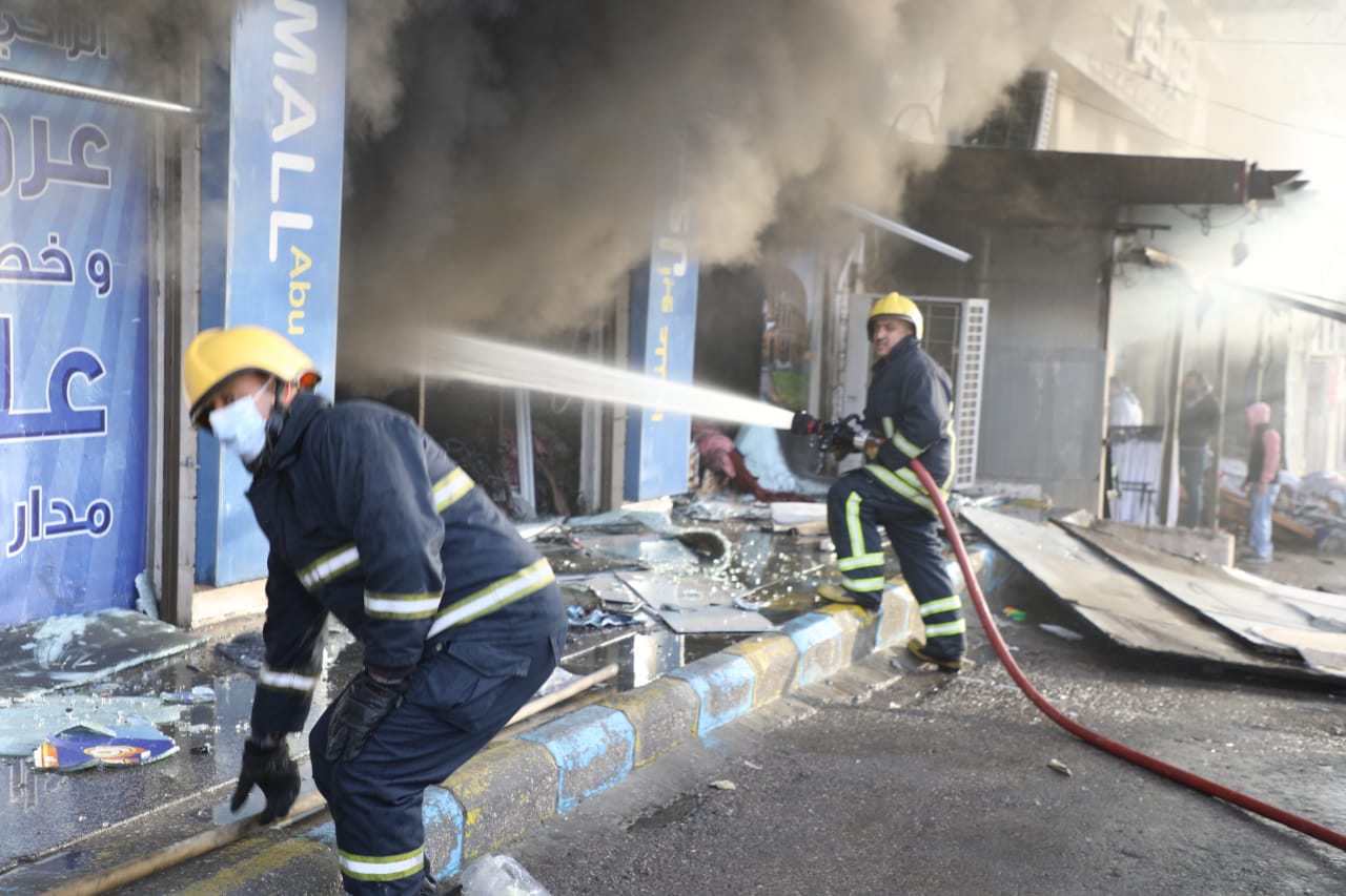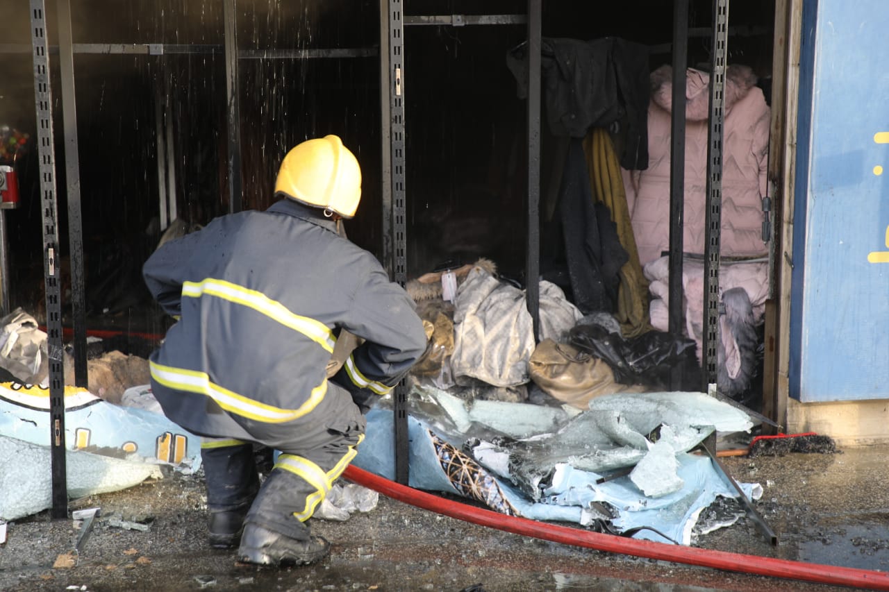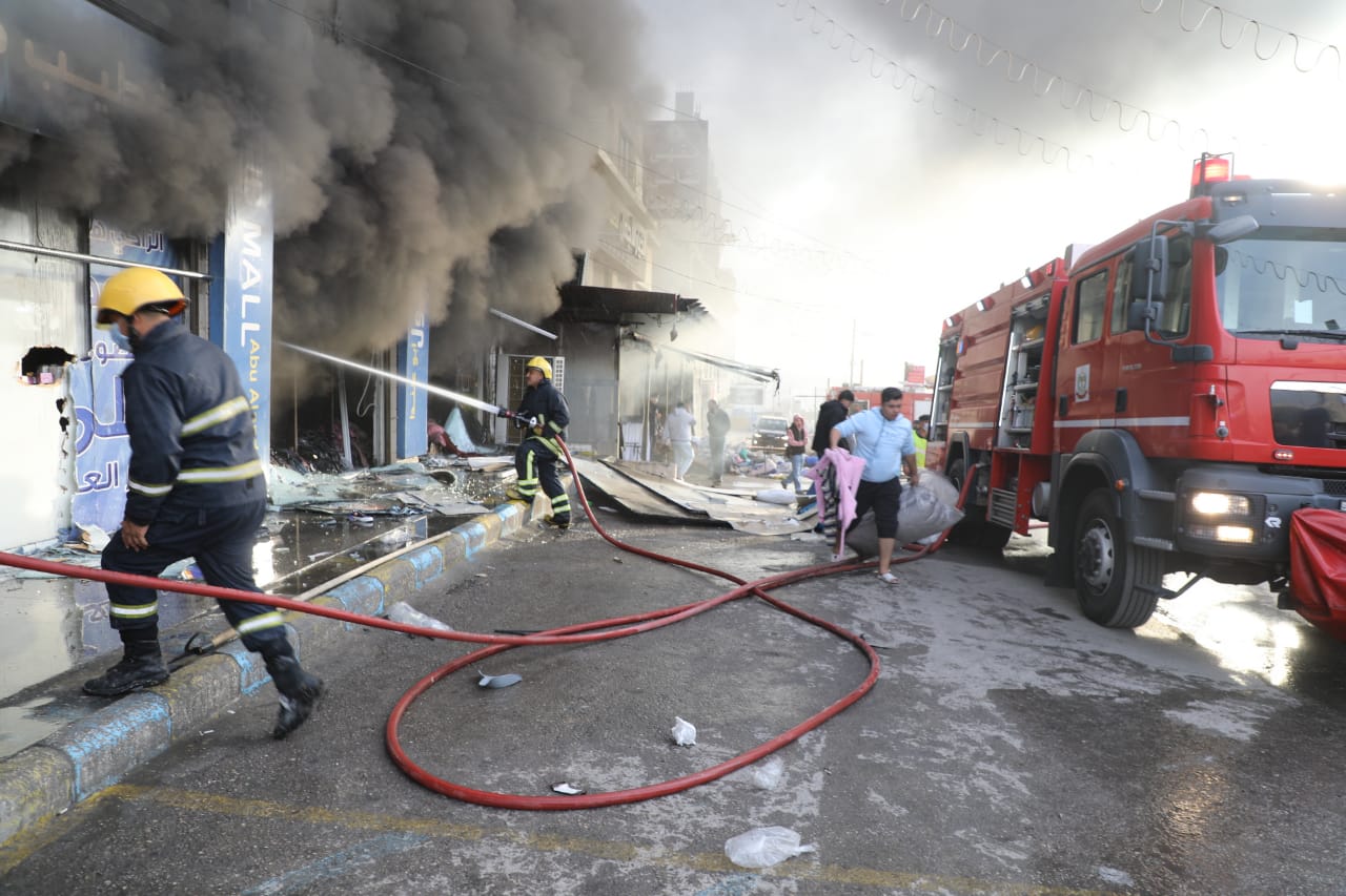 كوادر الدفاع المدني تخمد حريقاً في محل ملابس في عمان - صور