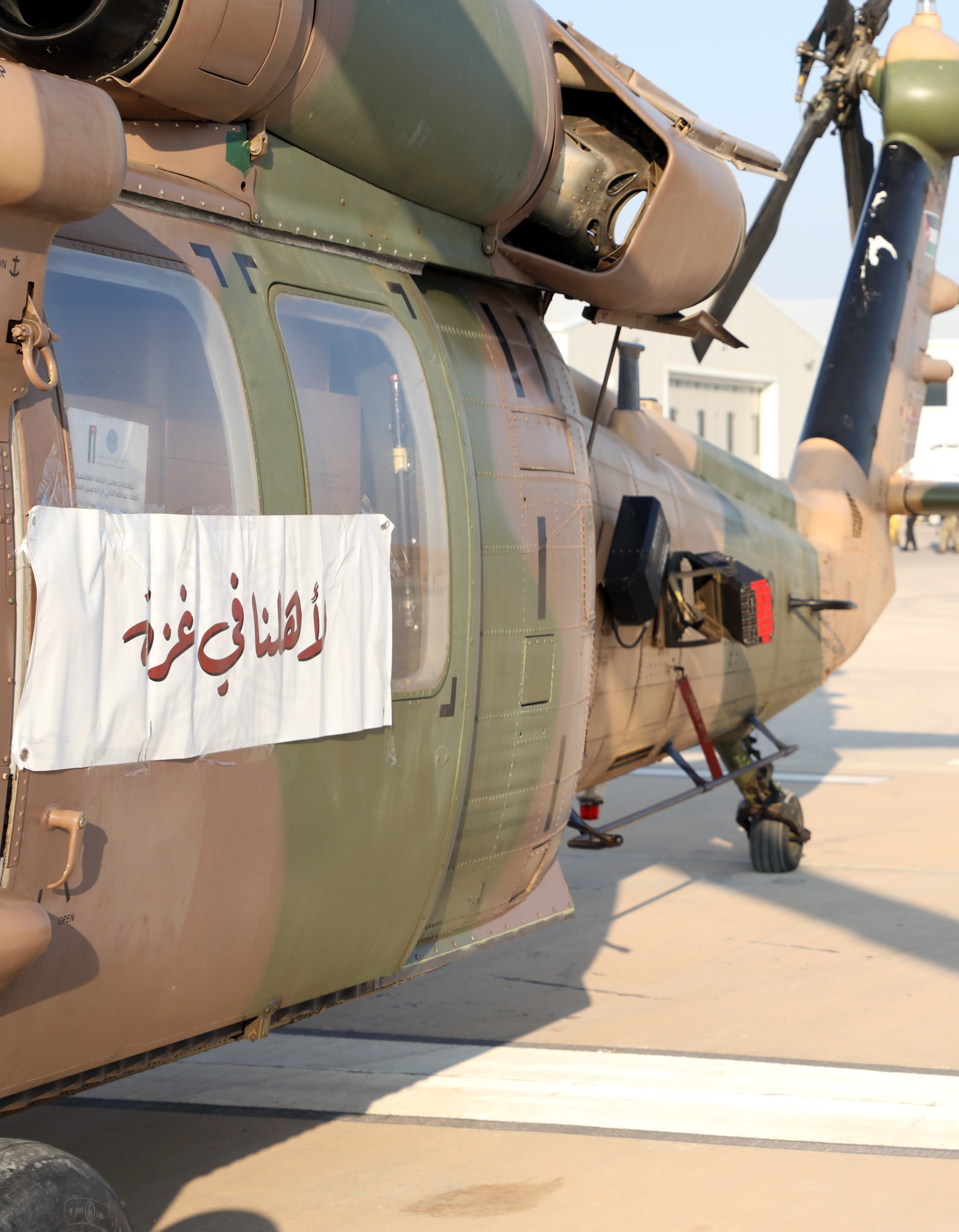 وقال، إنه بتوجيهات ملكية سيجري اليوم تسيير 16 طائرة عمودية تحمل مواد إغاثية وغذائية وطبية إلى أشقائنا في غزة ستستمر على مدى 8 أيام عمل.