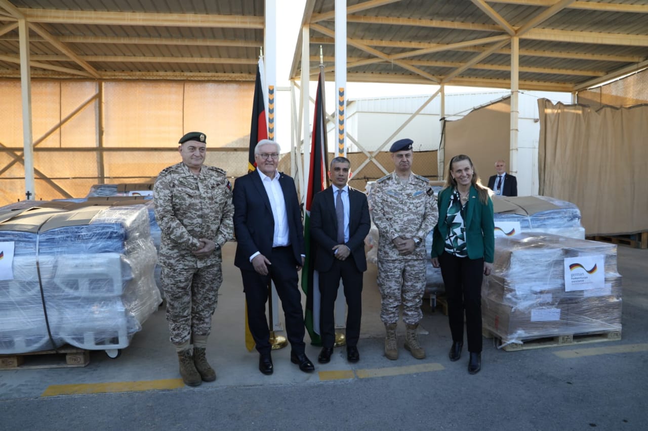 وسُلّمت المساعدات بحضور رئيس جمهورية ألمانيا الاتحادية فرانك فالتر شتاينماير، وسمو الأمير راشد بن الحسن رئيس مجلس أمناء الهيئة الخيرية الأردنية الهاشمية، ومدير عام الخدمات الطبية الملكية العميد الطبيب يوسف زريقات، ليصار إلى إرسالها للمستشفيات الميدانية الأردنية في قطاع غزة.