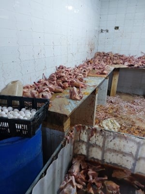 أحداث اليوم - أتلفت كوادر بلدية الرصيفة في منطقة جبل الامير فيصل كمية أطنان من الدجاج المذبوح غير الصالح للاستهلاك البشري وتم إغلاق الموقع "شقة سكنية" الذي يتم العمل به بالشمع الأحمر واتخاذ كافة الإجراءات القانونية اللازمة حسب الأصول بالتعاون مع مؤسسة الغذاء والدواء والإدارة الملكية لحماية البيئة
