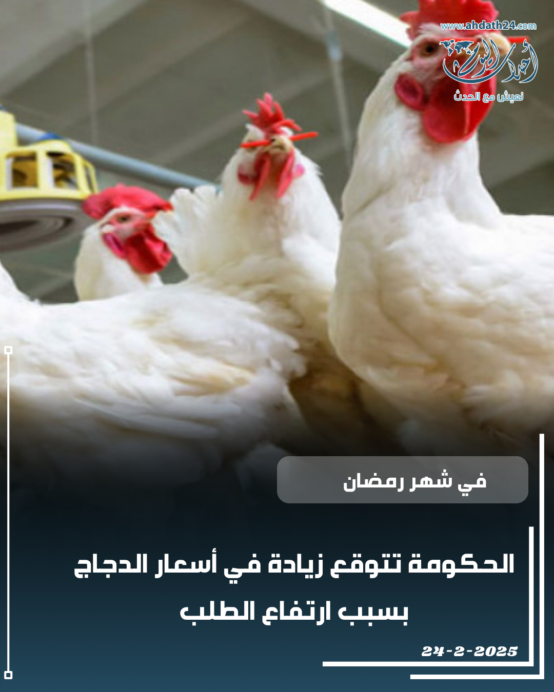 وتوقّع العمرو، أن تشهد أسعار الدواجن ارتفاعا خلال الأيام القليلة القادمة مدفوعة بارتفاع الطلب المتوقّع مع بدء شهر رمضان المبارك، داعيا إلى ضرورة ترشيد السلوك الاستهلاكي والشراء اليومي للاحتياجات لضمان بقاء السلع طازجة والأسواق مستقرة.