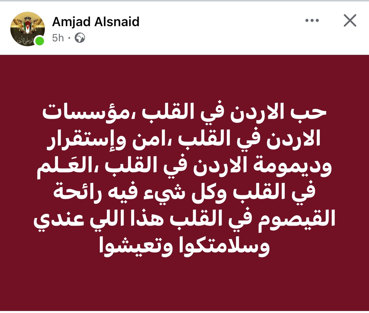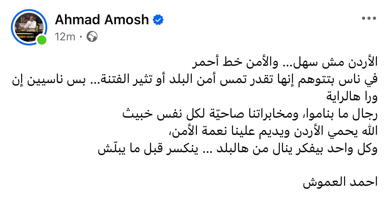 أحداث اليوم - أعرب عدد من المواطنين الأردنيين عن دعمهم الكامل لجهاز المخابرات العامة ، معبرين عن اعتزازهم بالكفاءة العالية التي تتمتع بها الأجهزة الأمنية المختصة.
