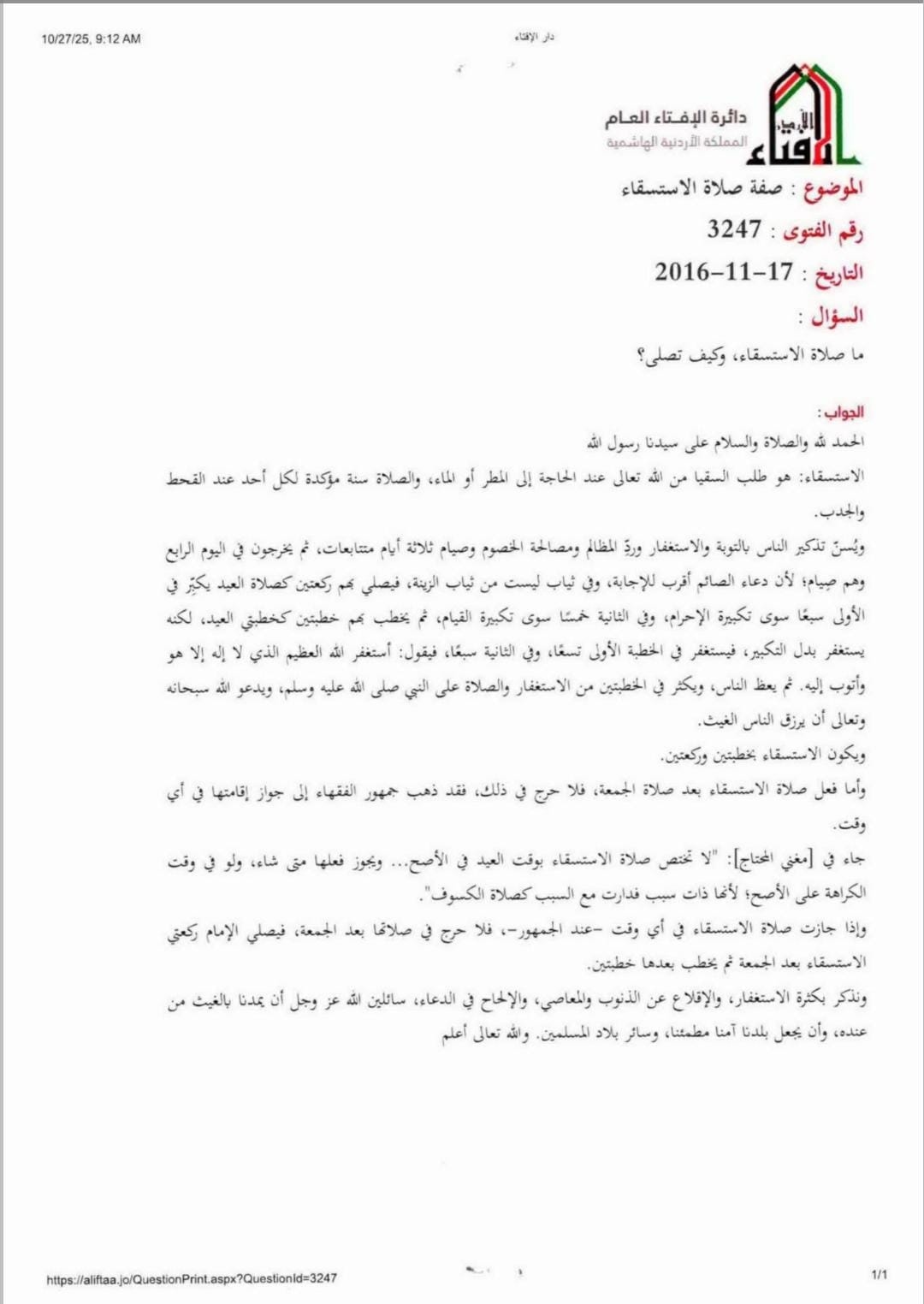 أحداث اليوم - دعت وزارة الأوقاف والشؤون والمقدسات الإسلامية المواطنين إلى أداء صلاة الاستسقاء يوم الجمعة القادم، في جميع مناطق المملكة، احياءً للسنة النبوية الشريفة.
