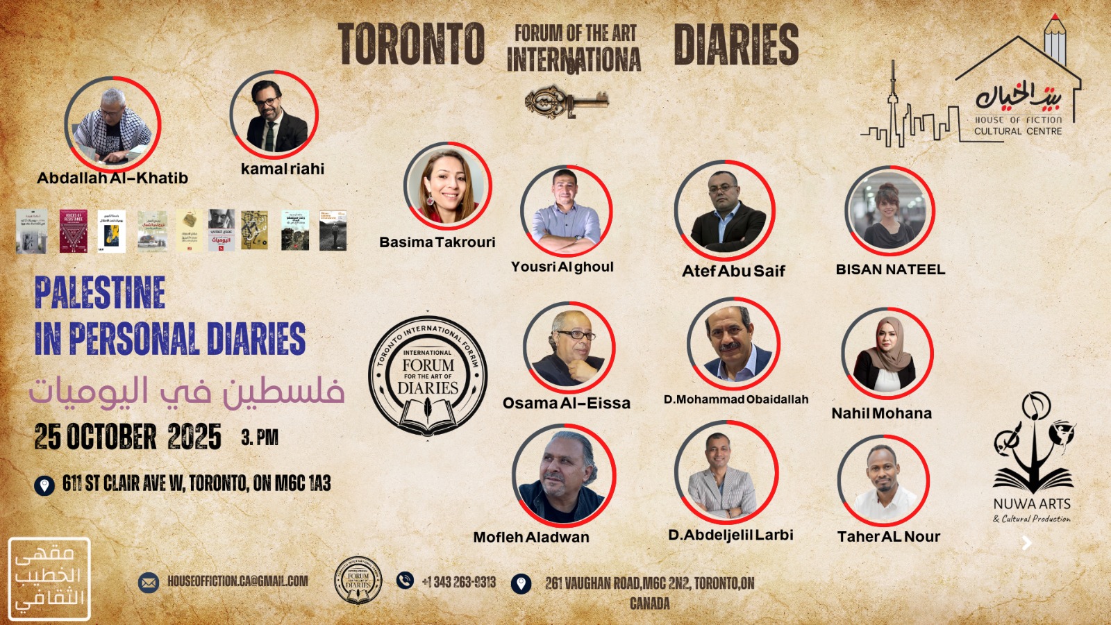نظم المركز الثقافي بيت الخيال بمدينة تورنتو الكندية بالتعاون مع قسم الدراسات العربية بجامعة يورك ومركز نواة ومنتدى الخطيب الثقافي ملتقى تورنتو الدولي لفن اليوميات. وهو أول ملتقى يعني بفن اليوميات في العالم أسسه الباحث والروائي التونسي كمال الرياحي.