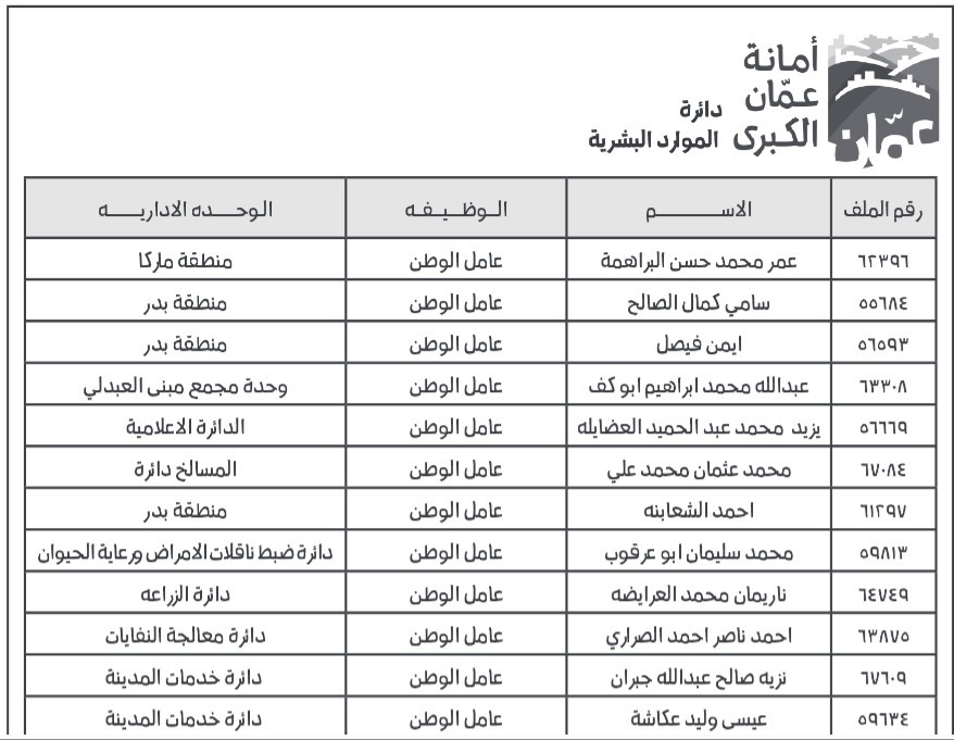 أمانة عمان تنذر موظفين .. العمل أو الفصل (أسماء)