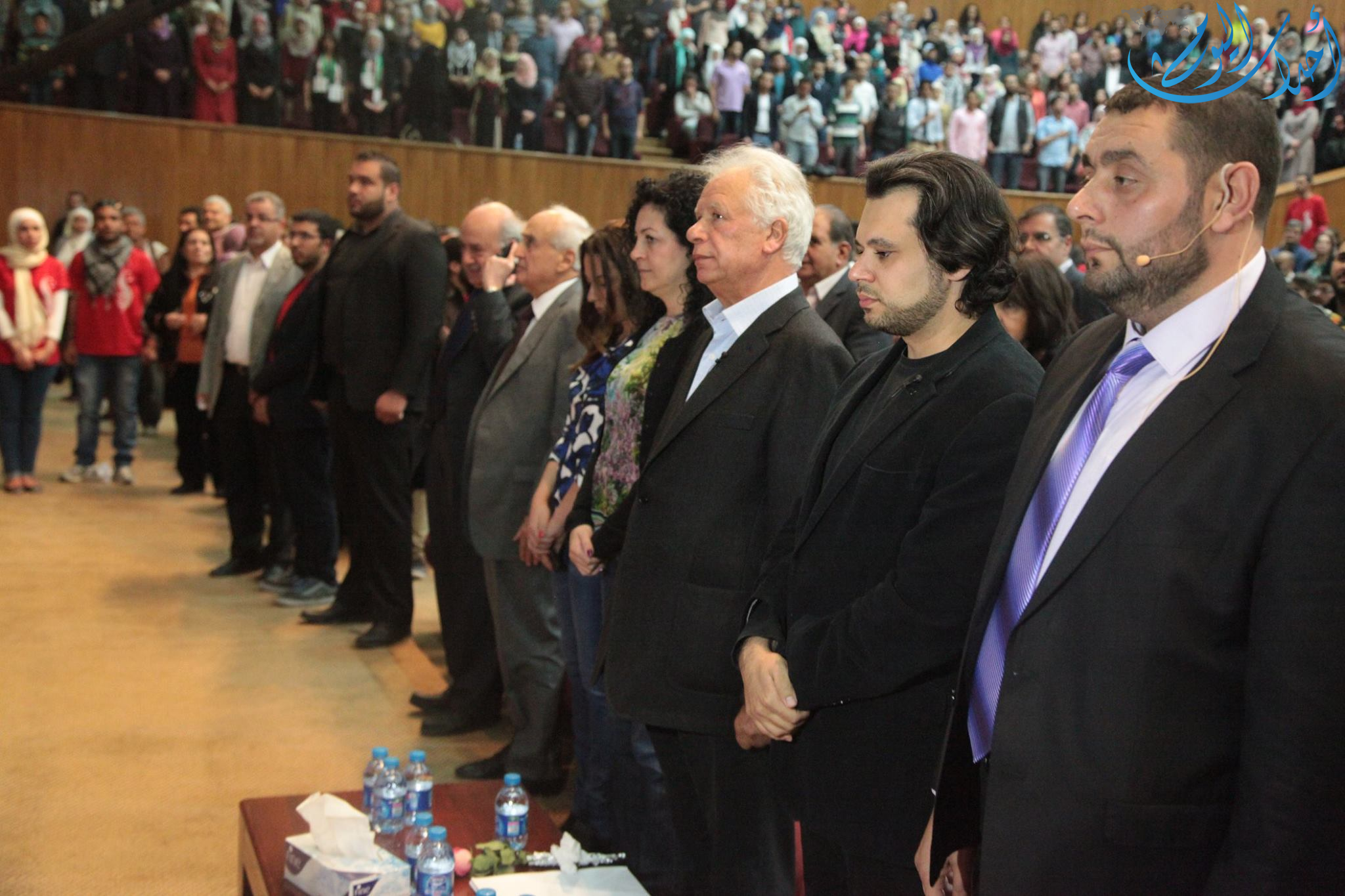 أما تميم فقد بدأ الأمسية بإلقاء قصيدة نعي لروح والدته ، و بعد أن أنهى ثالث قصائده رحب بالجمهور و قال "السلام عليكم ، أجلت الشكر من الخوف على الثلاث قصائد ، الحمدلله أني صعدت المسرح بسلام " .