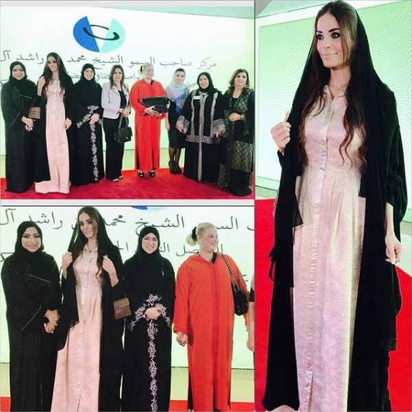وارتدت دومينيك فستان طويل وفوقه عباءة ووضعت الحجاب على رأسها بطريقة غير متقنة حيث يكشف كل شعرها , وكتبت :" كان حدث عظيم ومؤثر إنّو تشوفوا هالاطفال حافظين كل أجزاء القرآن ".