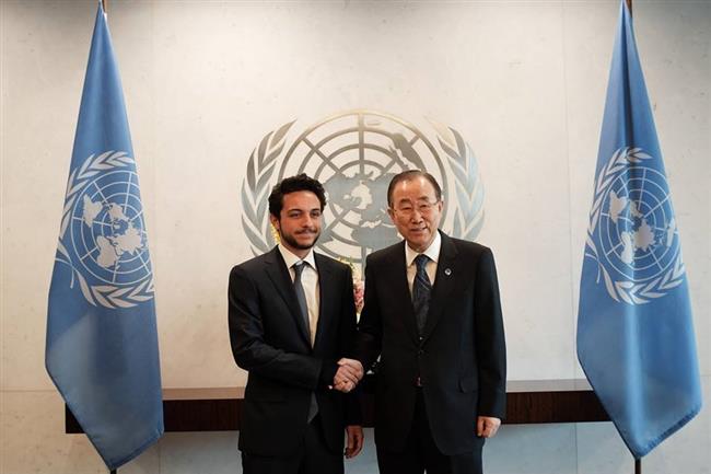 قابل سمو الأمير الحسين بن عبدالله الثاني ولي العهد مساء الاربعاء أمين عام الأمم المتحدة، بان كي مون حيث جرى بحث تطورات الأوضاع في الشرق الأوسط والعالم، وأبرز التحديات التي تواجه الشباب.