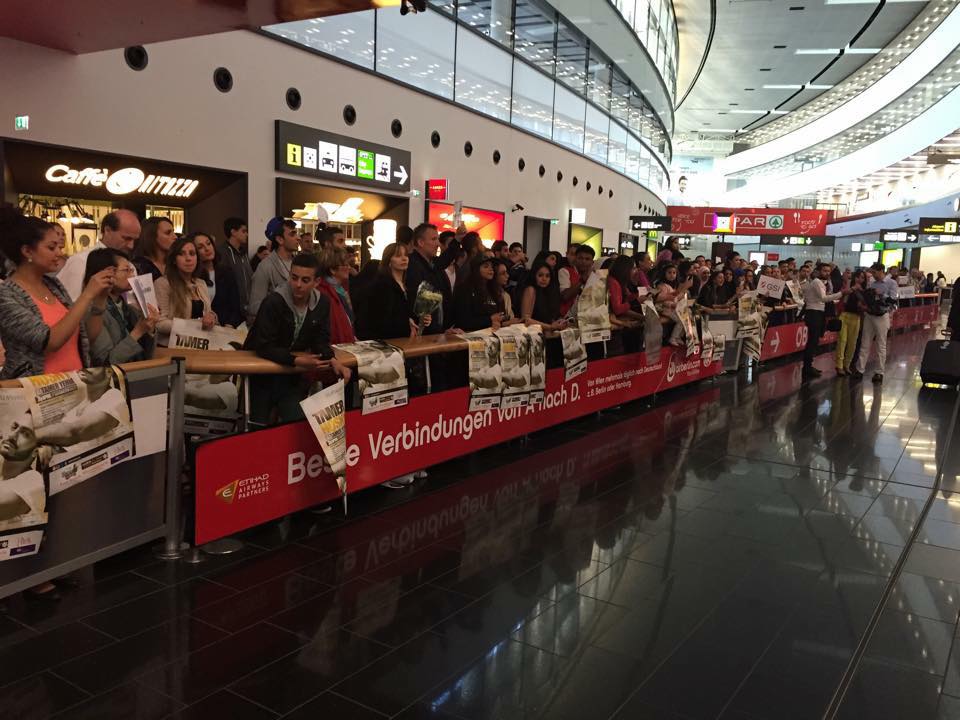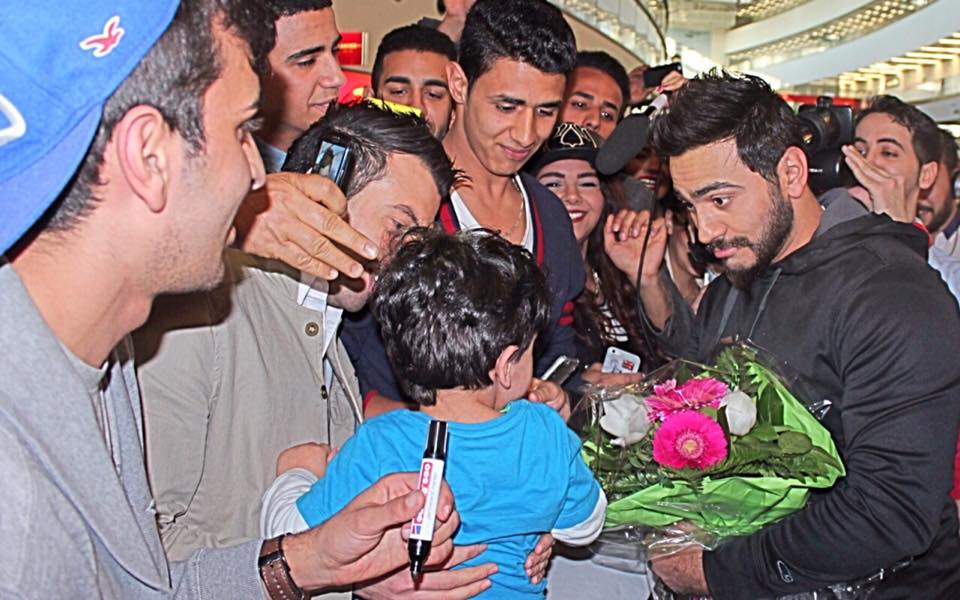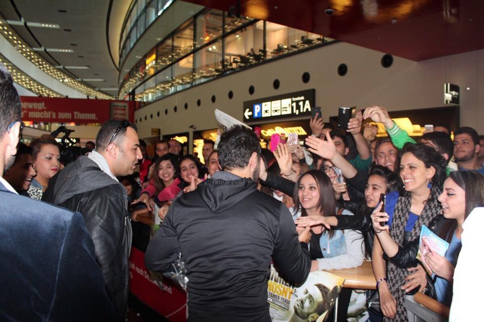 حظي الفنان المصري تامر حسني باستقبال حاشد من قبل الجماهير النمساوية الجماهير والغناء فور وصوله مطار النمسا، استعداداً لحفله الغنائي هناك الذي سيقام يوم الجمعة المقبلة.