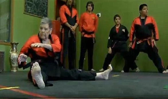تبقي إمرأة في العقد الثامن من عمرها على لياقتها عبر تدريب الكاراتيه في ولاية أريزونا الأميركية، وتتمتع بلياقة بدنية كبيرة وإرادة صلبة.