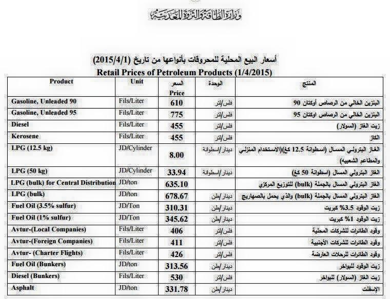 ويبين الجدول التالي الأسعار الجديدة للمحروقات: