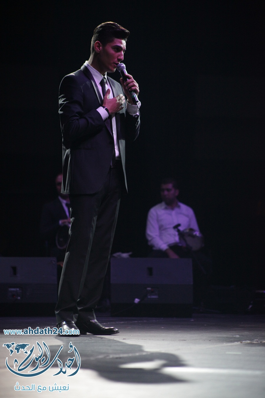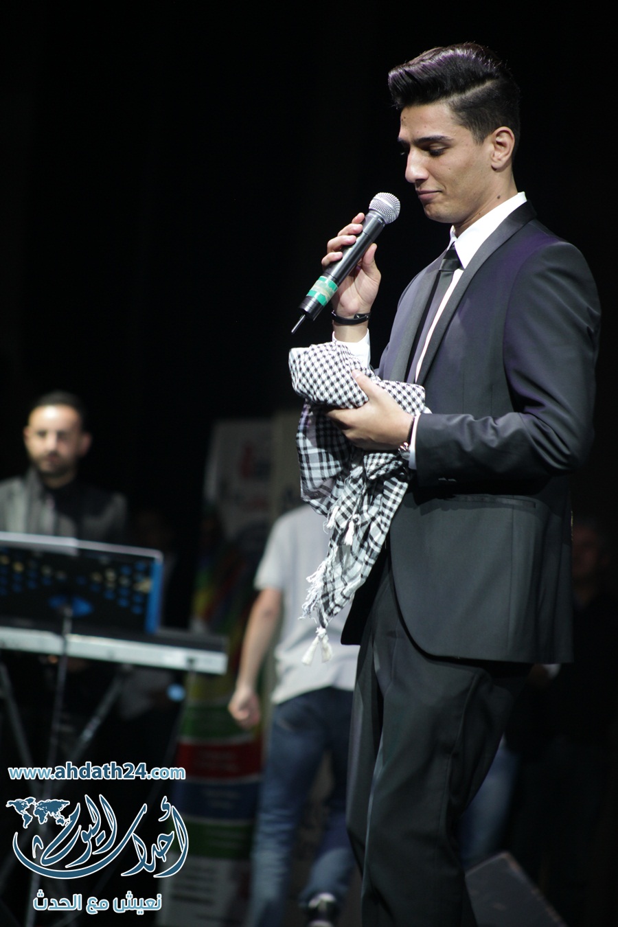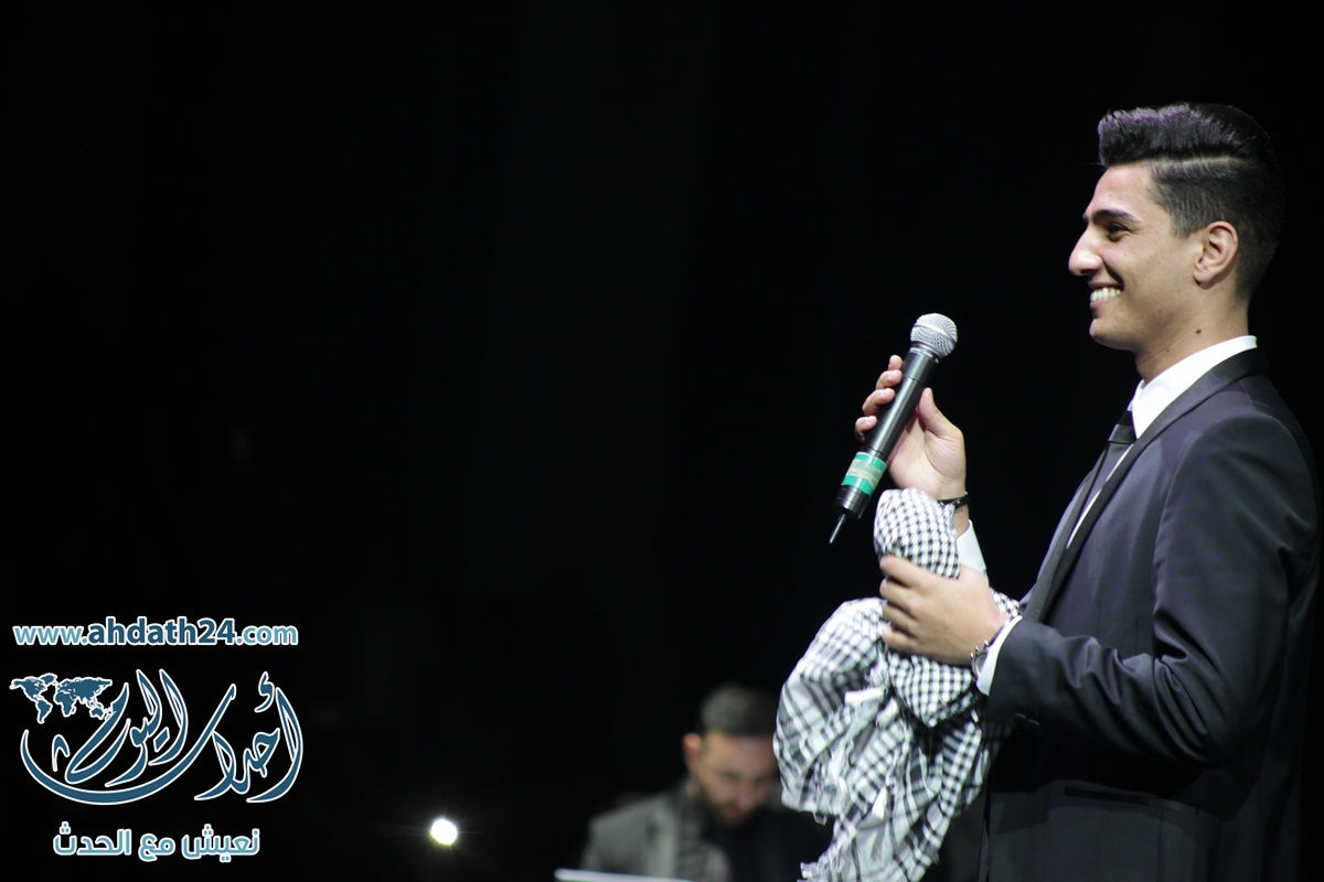 و أشعل صاحب الحنجرة الذهبية الحفل بأغانيه الشعبية الفلسطينية عوضاً عن غنائه لأعماله الفنية التي أنتجها بعد فوزه بلقب " ارب أيدول " و منها " يا أبو حسين " و " لوين بروح " .