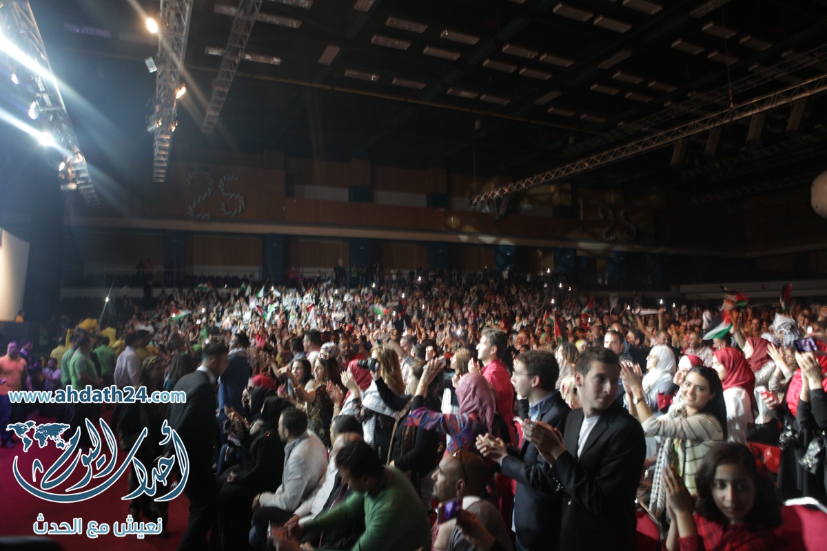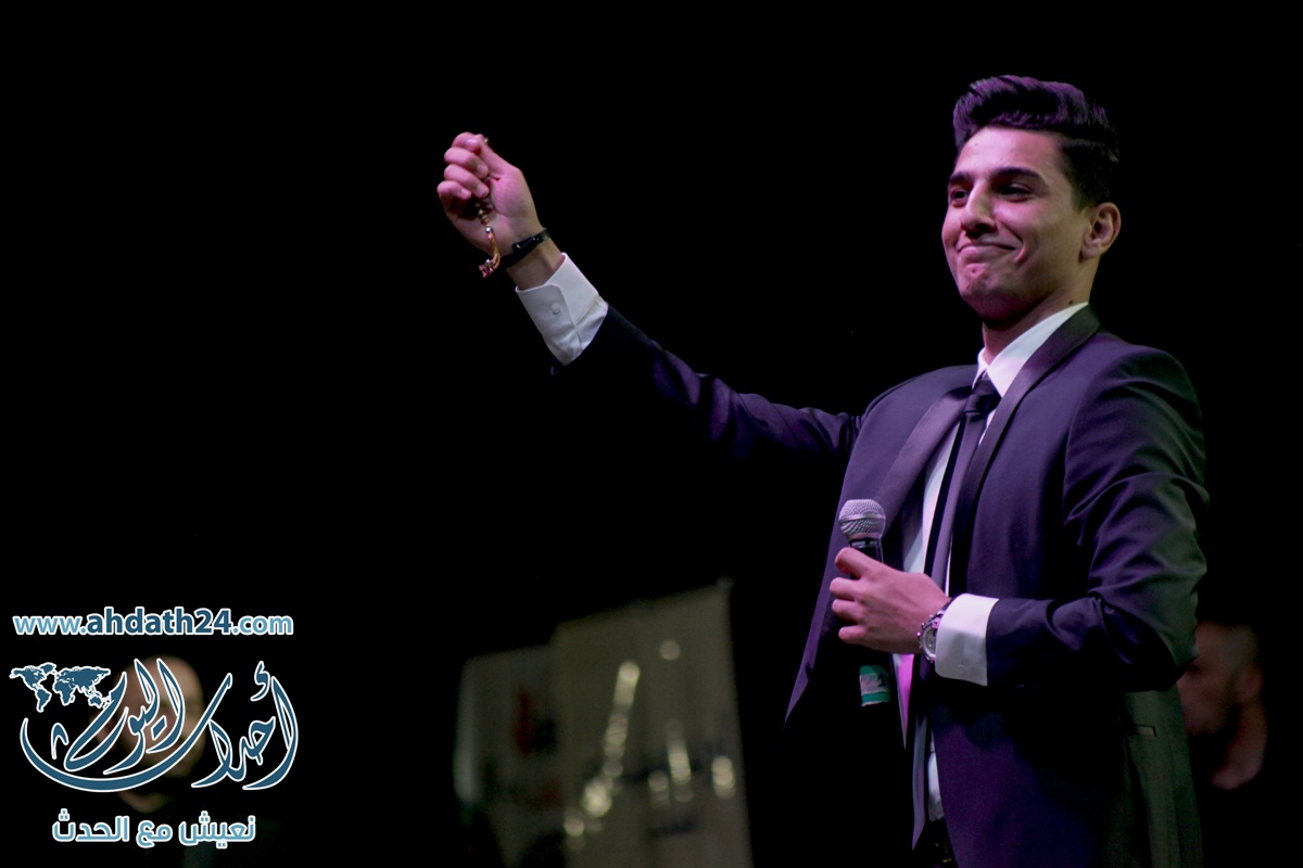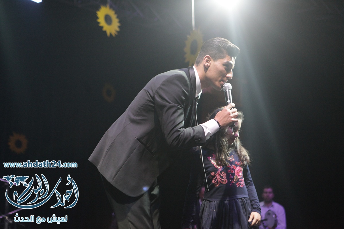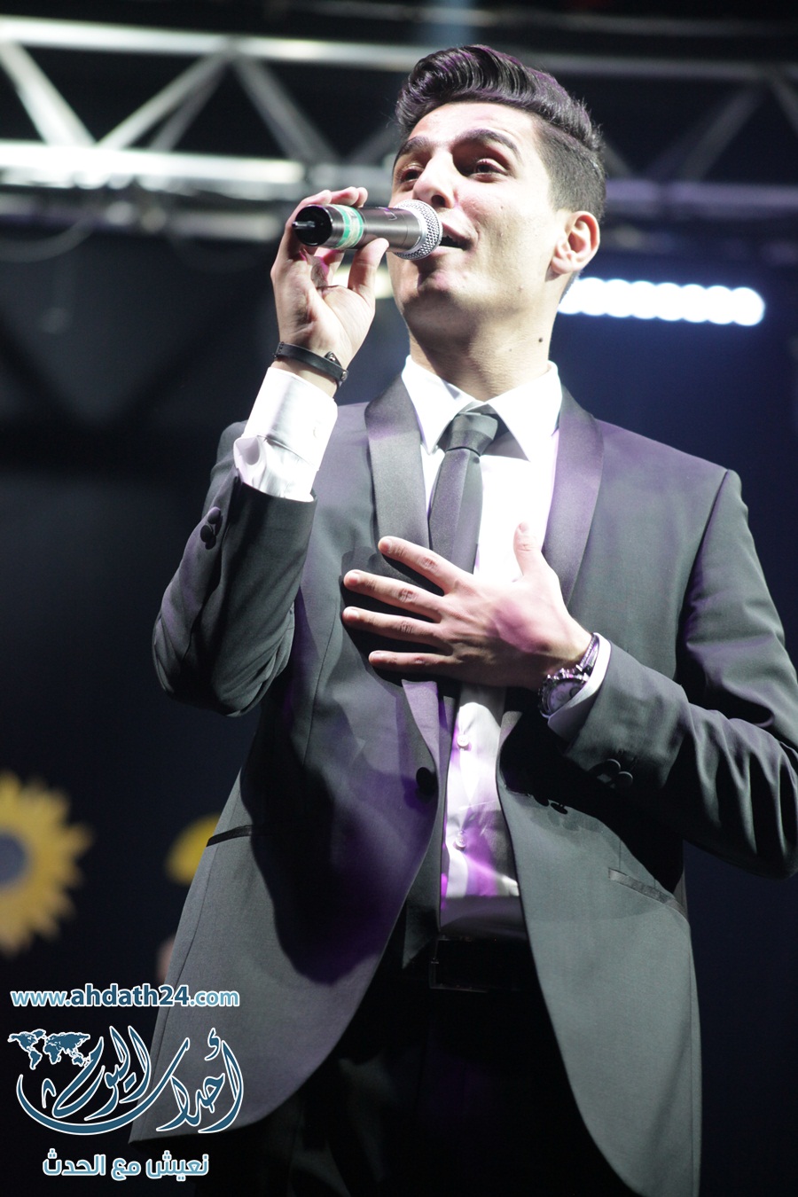 و أشعل صاحب الحنجرة الذهبية الحفل بأغانيه الشعبية الفلسطينية عوضاً عن غنائه لأعماله الفنية التي أنتجها بعد فوزه بلقب " ارب أيدول " و منها " يا أبو حسين " و " لوين بروح " .