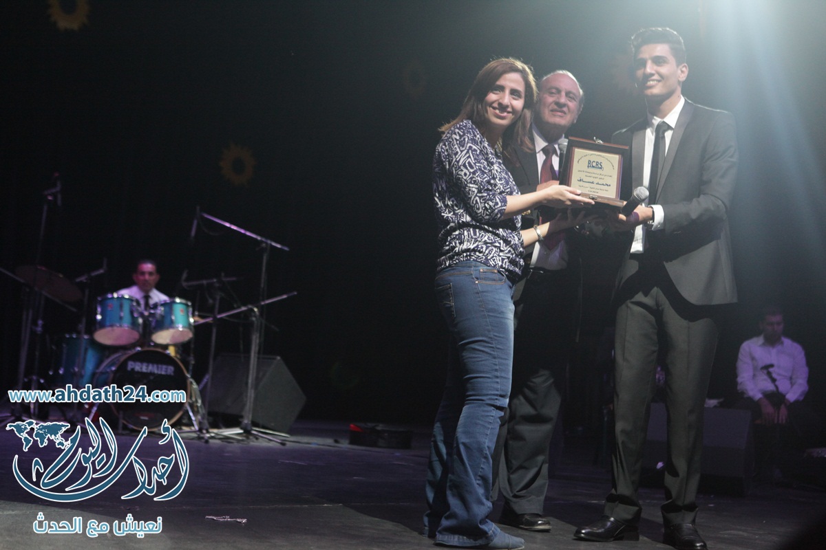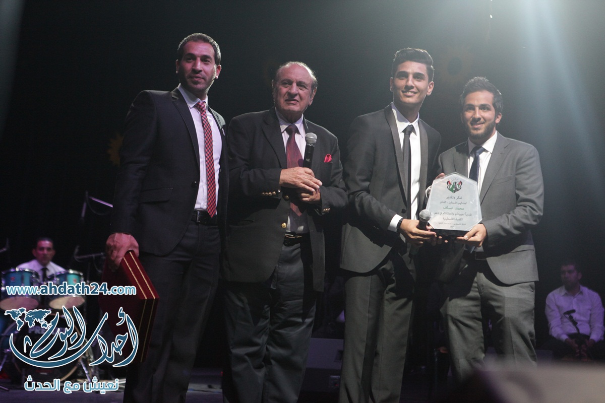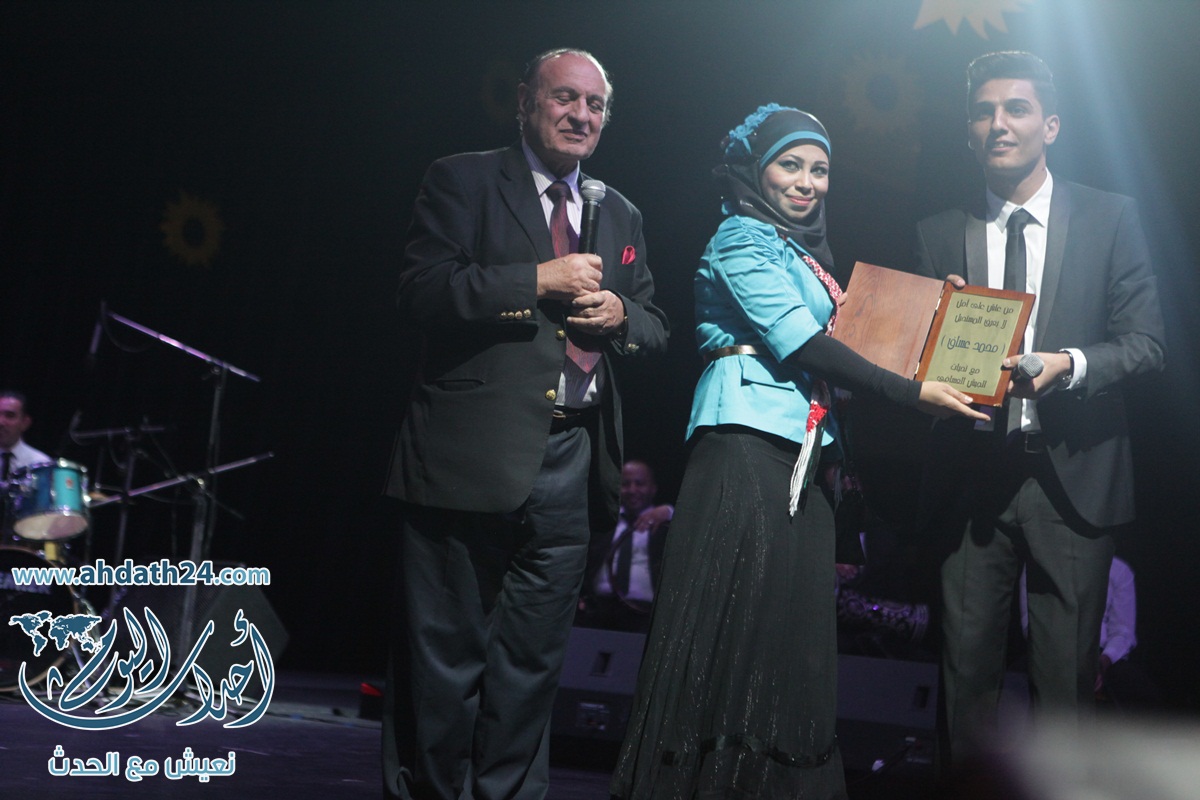 وقدمت ممثلة " الجيش العسافي " درعاً تكريمياً للفنان الفلسطيني بالأضافة الى درع تذكاري من الطلاب الفلسطينين في جامعة عمان الأهلية .