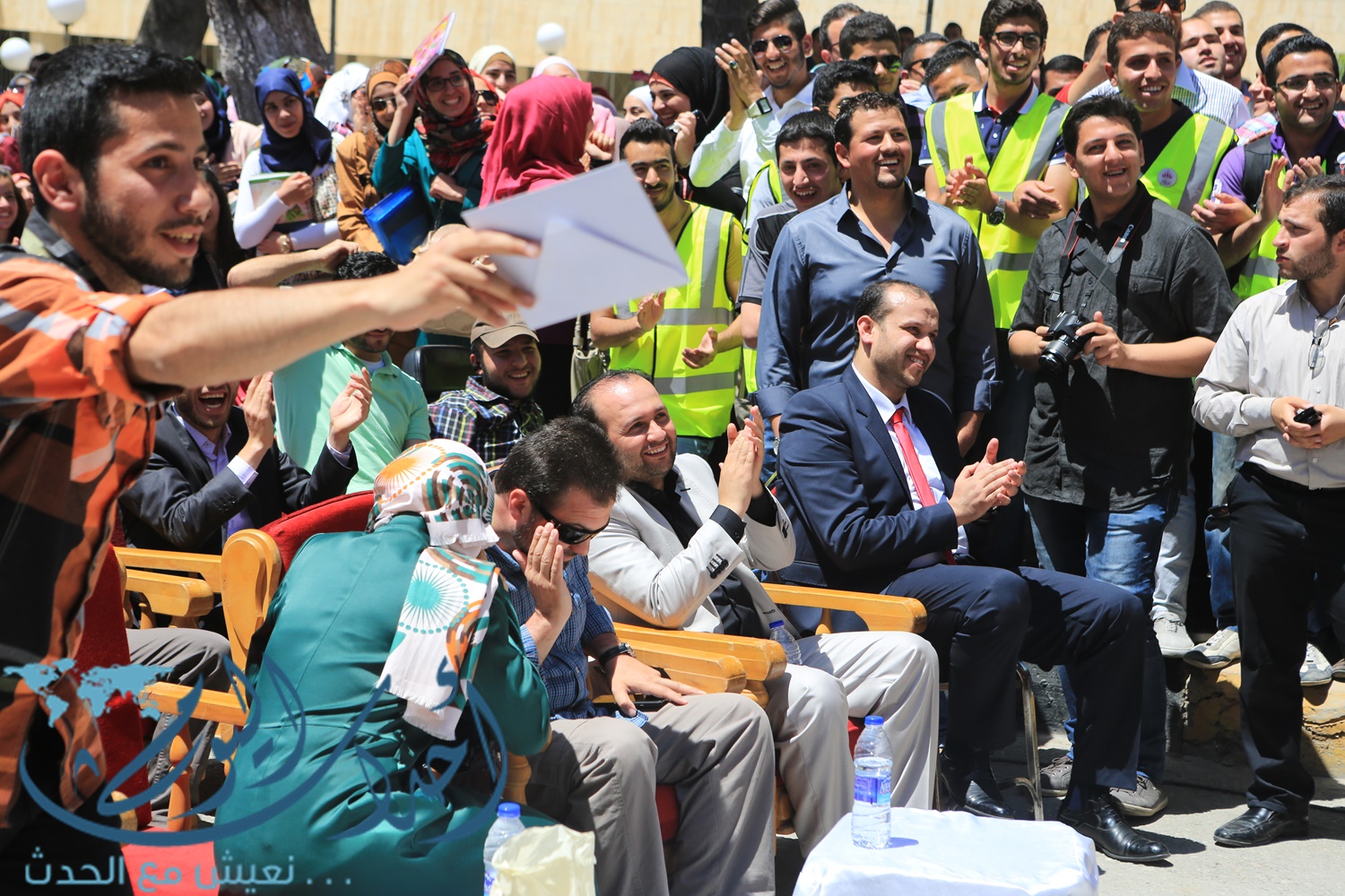 وتنوعت فقرات الحفل ، حيث القى الكوميدي معاوية الطرمان فقرة كوميدية بتقليد الاصوات ، ثم القى الدكتور امجد قورشة كلمته موجهاً العديد من النصائح للمجلس الطلابي وممثليهم ، ثم القت النائب هند الفايز كلمتها والتي لاقت تفاعلاً كبيراً بين الطلبة ، وطرح عدة مواضيع تخص الطلبة ، حيث وجهت الفايز دعوة للطلبة بالحضور لمجلس الامة والاستماع والمشاركة بما يحدث بمجلس النواب من سن قوانين وانظمة تمس الوطن والمواطن .