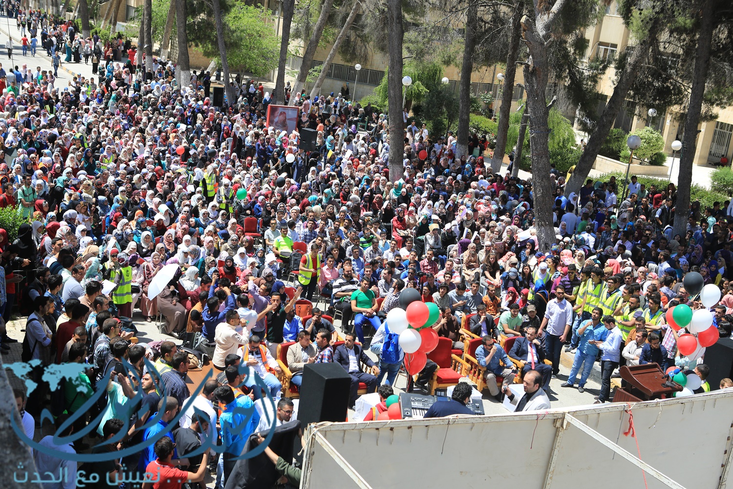الحفل الذي كان عريفه الإعلامي أسامة الجيتاوي والذي ألقى بظلال شخصيته على الحفل والحضور ، حضره الالاف من طلبة الجامعة ومختلف التخصصات .