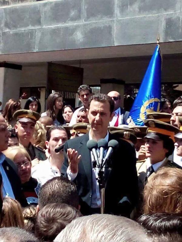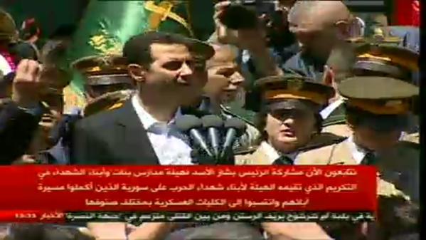 ظهر الرئيس السوري بشار الأسد على شاشة التلفزيون الحكومي السوري ، لالقاء كلمة لاحياء "يوم الشهيد " في دمشق .