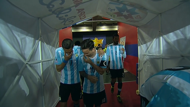 وقال ميسي لدي ماريا بعد تلقي التعليمات من تاتا مارتينو مدرب الأرجنتين: "ماذا كان يُقال في غرفة الملابس؟، إنه أمر سهل؟!"، ليجيبه لاعب ريال مدريد الإسباني السابق: "إنها ليست نتيجة سهلة"، ليضحك ليو ورفيقه قبل دخولهم للشوط الثاني.