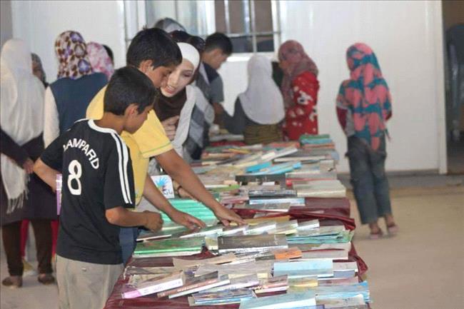 اقامت مجموعة "بايدينا التطوعية" معرضا للكتاب في مخيم الزعتري للاجئين السوريين ، وذلك بمناسبة الذكرى السنوية لانطلاقتها.