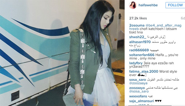 الجمهور بدأ يسخر من هيفاء بأنها ترتدي ملابس غير متناسقة متسائلين عن سر اصرارها على ارتداء التنورة المثيرة للضحك، غير أن البعض الآخر امتدحها ملمحا إلى أنها ارتدت هذه التنورة كنوع من الاحتشام خاصة مع حلول شهر رمضان، لتبدأ المشادات الكلامية بين متابعيها.