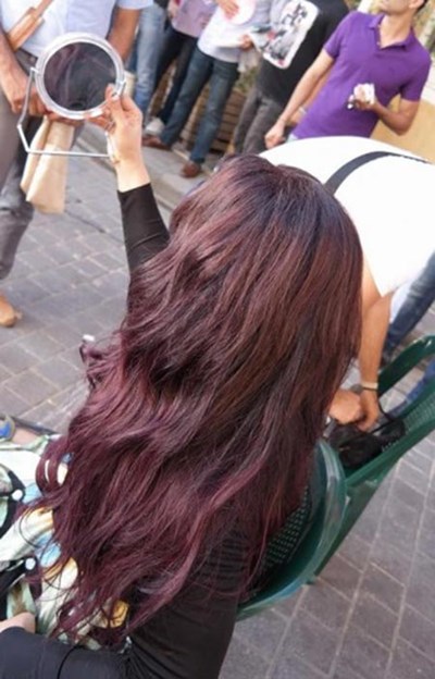 صور: أحلام تصبغ شعرها في شارع عام