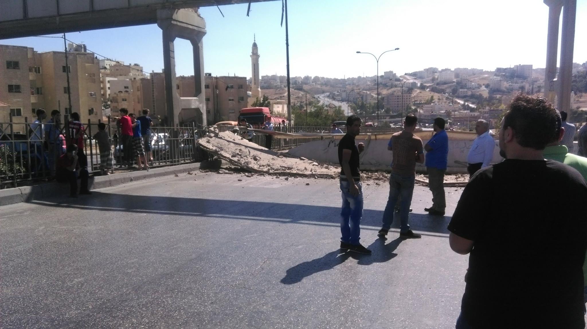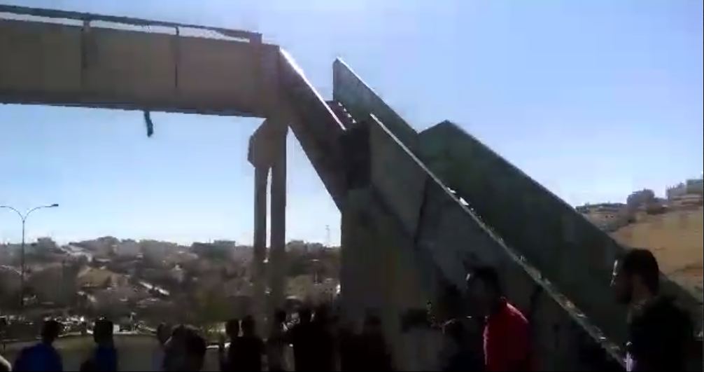 بالصور .. انهيار جسر مشاة على اتستراد الزرقاء