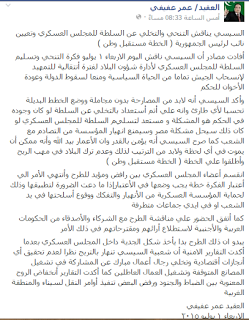 السيسي: ساسلم الحكم للمجلس العسكري واعلن التنحي عن رئاسة مصر - وثيقة