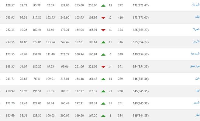 وفيما يلي ترتيب المنتخبات العشرة الأولى في التصنيف: