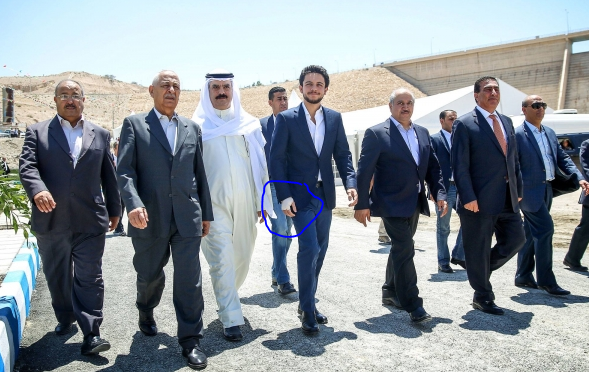 لاحظ متابعين خلال قيام نائب الملك سمو الأمير الحسين بن عبدالله الثاني ولي العهد خلال أفتتاح مشروع جر مياه سد الموجب الى محافظة الكرك ، بأن الامير يضع رباط طبي على يده اليمنى مما فسر بان الامير قد تعرض للاصابة .