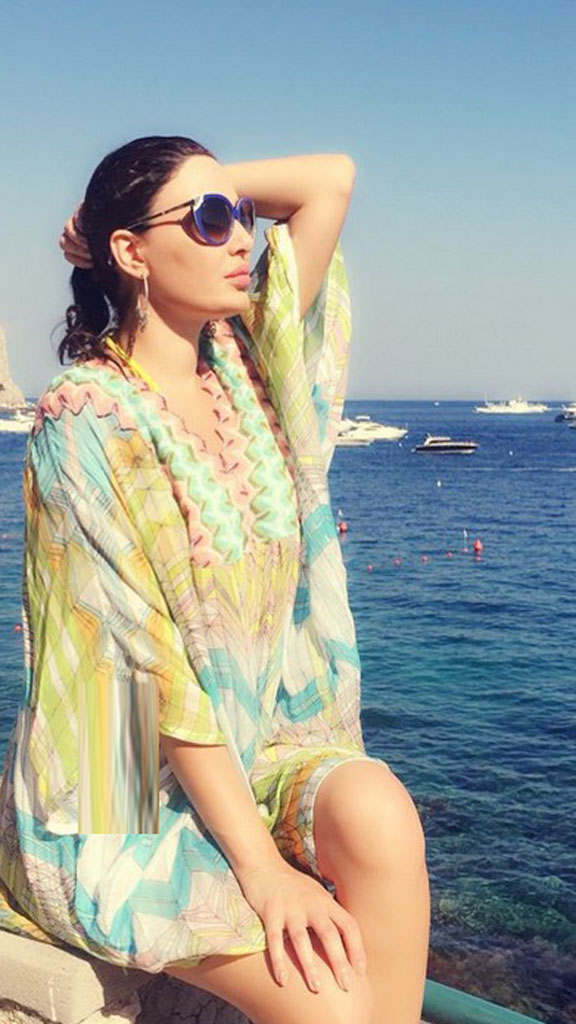 نشرت سيرين صوراً لها من إجازتها، وفي إحدى الصور تظهر بثوب صيفي وشعر مبلل تنظر الى البحر.