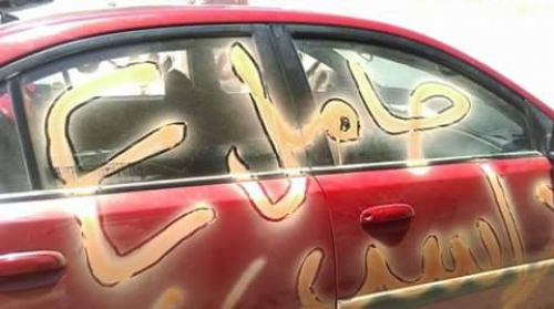 وبحسب الصور فقد قام احد الطلاب من لم يحالفهم الحظ في هذه الدورة الصيفية بكتابة راسب بمبحث اللغة الانجليزية على مركبته متجولاً بها في شوارع .