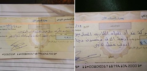 وأضاف أن "ما علمناه أن الشيكات التي يقوم هذا الشخص بإعطائها للتجار ليست مزورة بل حقيقية ولكنها مسروقة من قبل المؤسسة