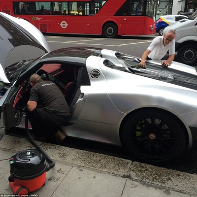 السيارة كانت تحمل أرقام سعودية، وتعود ملكيتها إلى أحد أقارب يزيد الراجحي، بطل الراليات السعودي الشهير. وفقاً لصحيفة الديلي ميل البريطانية وصلت هذه السيارة إلى لندن قادمة من السعودية وكانت مغطاة بالأتربة والرمال، مما دعا مالكها لتكليف رجلين بتنظيفها وتلميعها، وقد استغرق منهم الأمر ساعة تقريباً، وكما ظهر في الصور استخدامهما لمكنسة كهربائية في الشارع للتخلص من الأتربة.