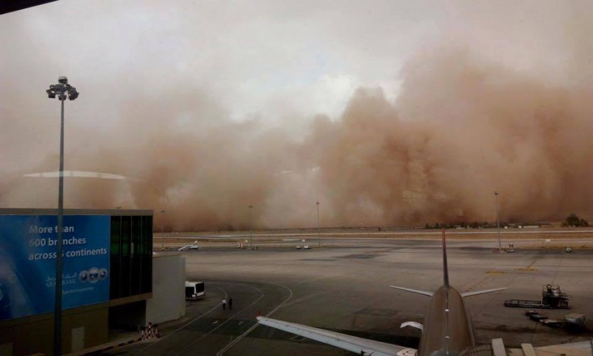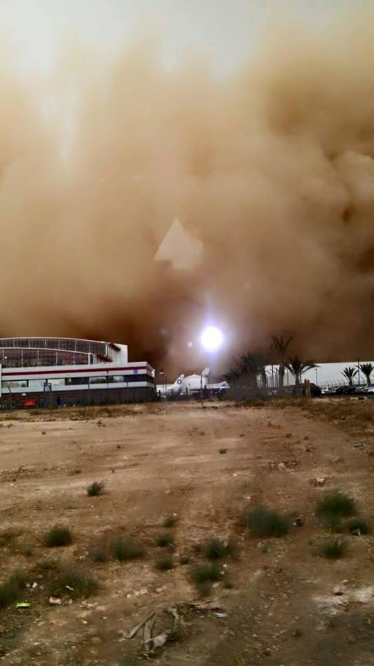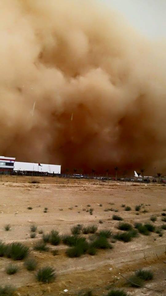 بالصور .. عاصفة رملية تضرب مطار الملكة علياء