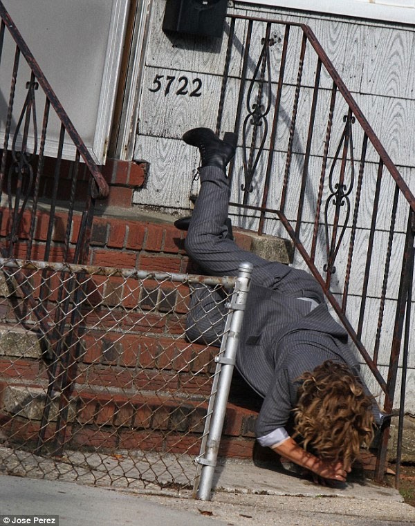 وقد تعثرت لوبيز البالغة من العمر 46 على درج السلم ووقعت على رأسها في مشهد مميز جداً ومحترف.