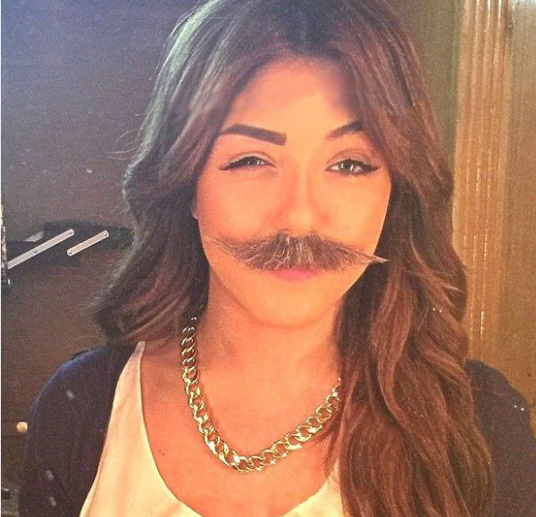 الفنانة المصرية ظهرت في الصورة، وهي تضع شارب وترفع أحد حاجبيها، فيما تركت شعرها منسدلا.