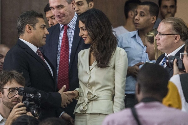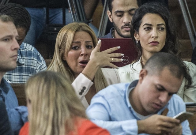 حضرت المحامية الشهيرة أمل علم الدين زوجة الممثل جورج كلوني إلى القاهرة من أجل المشاركة في جلسة النطق بالحكم في القضية المعروفة إعلامياّ بـ''خلية الماريوت''.