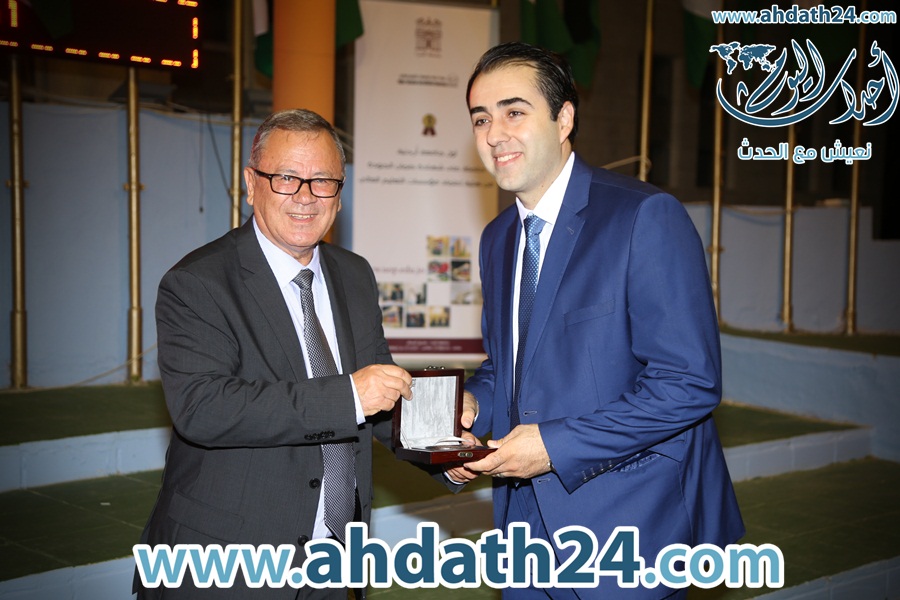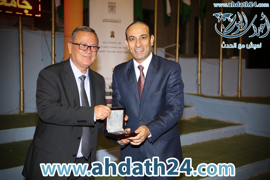 وفي نهاية الاحتفالية الذي تخللها حفل عشاء للمدعوين قام رئيس الجامعة بتسليم الدروع والميداليات على مستحقيها من أعضاء لجان العمل والمنسقين في برامج العمل والمعايير.
