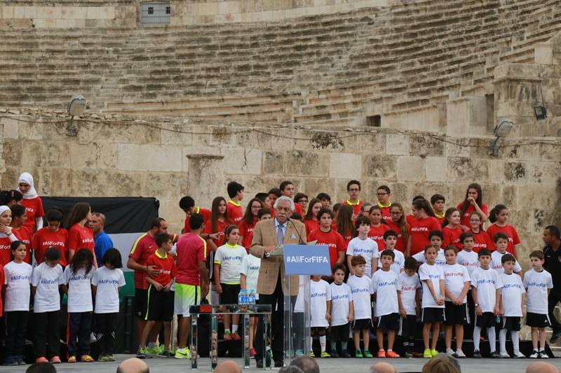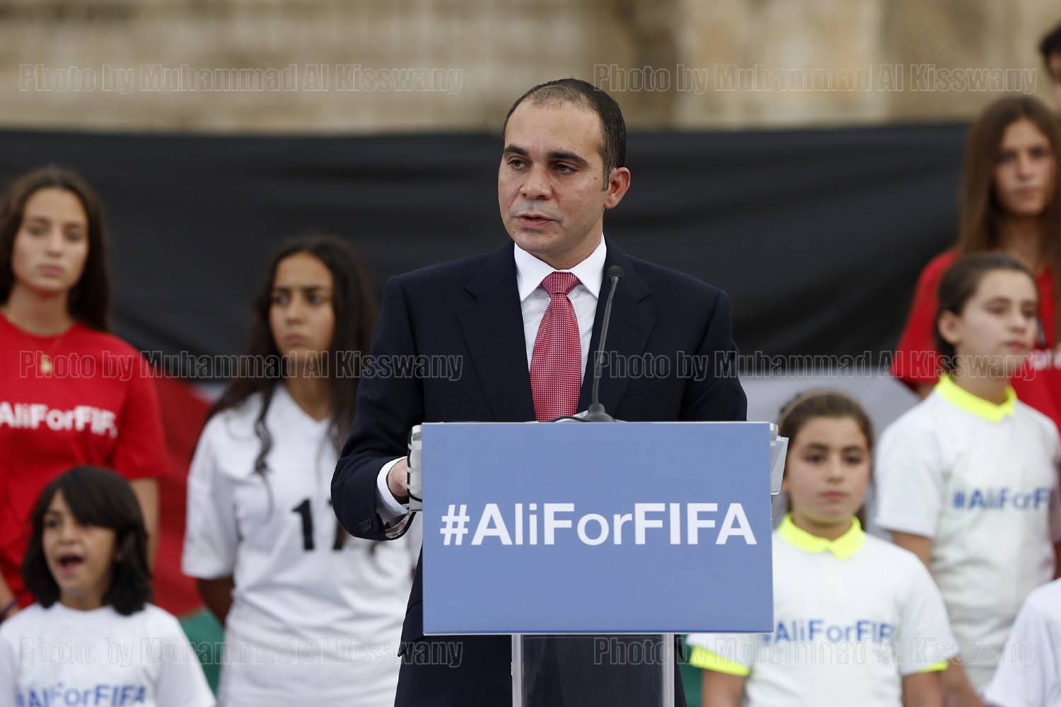 وأضاف الأمير علي (39 عاما) خلال مؤتمر صحفي لإعلان ترشحه في العاصمة الأردنية “اخواني واخواتي أرحب بكم اليوم من قلب عاصمتنا الحبيبة عمان. من هنا ومن أمام هذا الصرح العريق الذي سجل له التاريخ مكانته العالمية نقف اليوم من أجل حبنا وعشقنا لكرة القدم هذه الرياضة التي تأسر قلوب الأطفال والشباب والشابات في كل أنحاء العالم هذه الرياضة النبيلة التي عصفت بها الرياح في الفترة الماضية.”