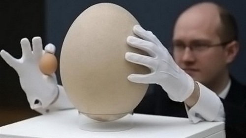 تم العثور على بيضة ضخمة جدا تعود الى أكثر من 400 عام وهى بيضة ضخمة جدا يصل طولها الى أكثر من 30 سم، وتم عرض هذه البيضة فى مزاد بلندن حتى وصل سعرها الى 76 ألف دولار.