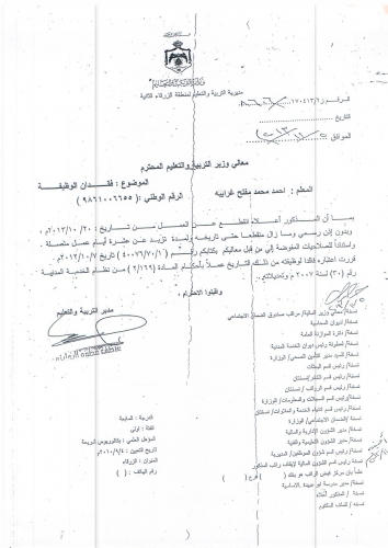 نشرت نقابة المعلمين مساء الاحد قصة لمعلم يدعى احمد الغرابية من محافظة الزرقاء تحدثت فيها عن كيفية فصله من وزارة التربية والتعليم بعد ان تم توقيفه بذمة قضية ثبت براءته منها بالمطلق في وقت لاحق.