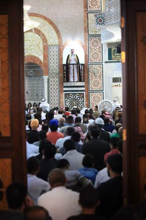 وشهدت المنطقة أغلاق للطرق الشوارع الفرعية المؤدية للمسجد ، وسط حضور امني كثيف ممثل برجال السير والأمن العام وبعد انتهاء صلاة الجمعة، حيث التف آلاف المصلين المحبين للسلام على الداعية القضاة ، فيما سعى البعض لالتقاط الصور التذكارية معه.